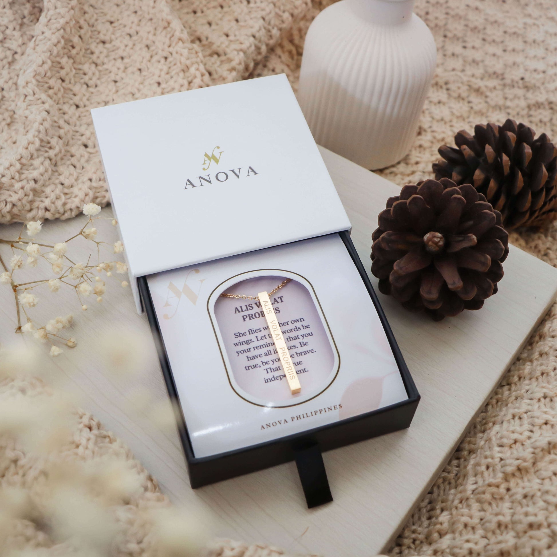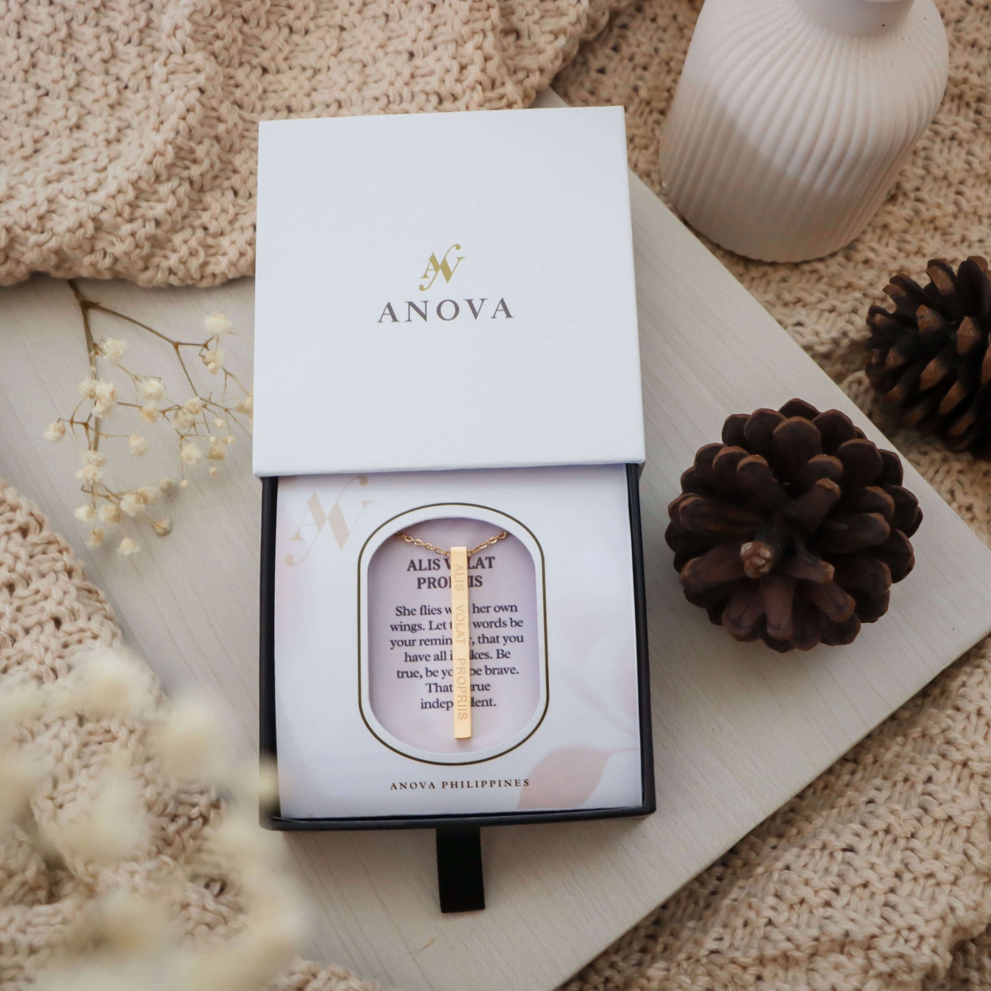Alis Volat Propriis "She flies with her own wings" Bar Necklace